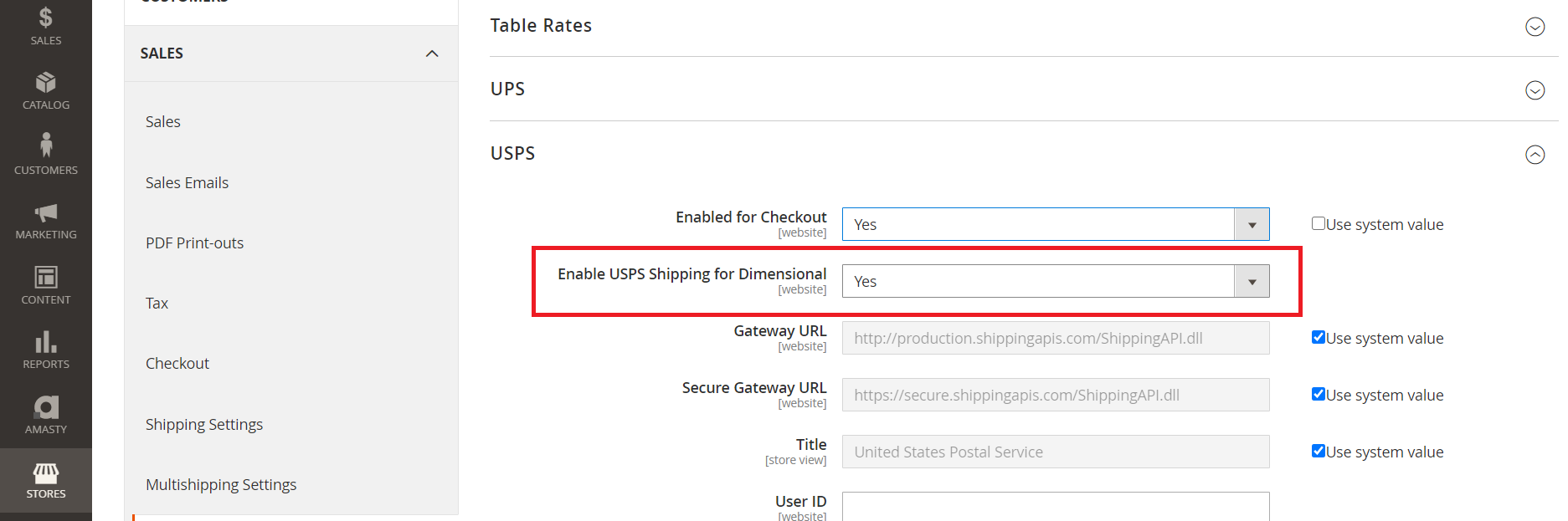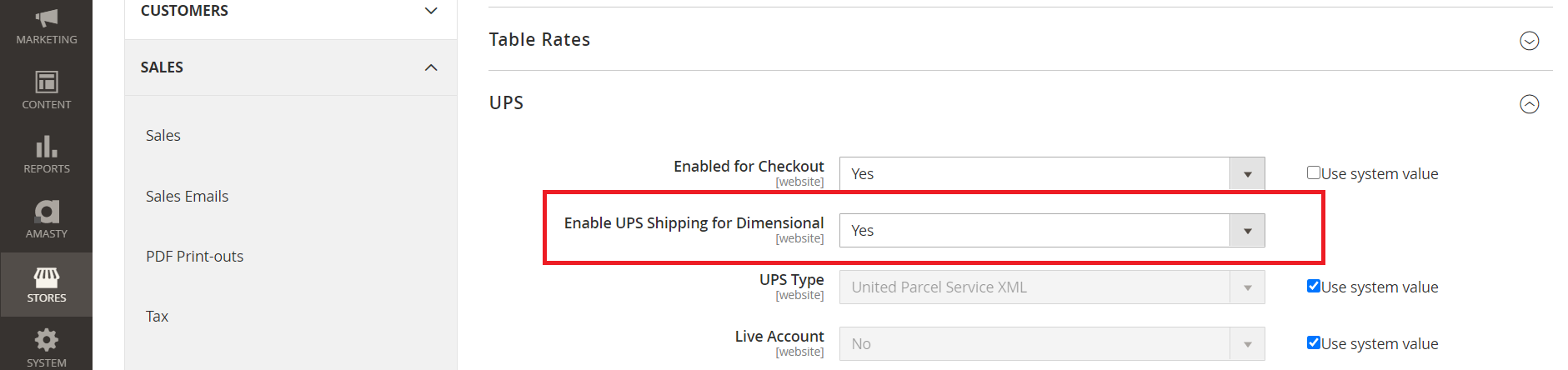 STEP: 9 Select the yes option for enabling dimensional rates under the shipping method you want to use.