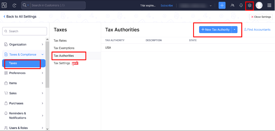 - Create Tax Authorities: If you haven't set up any tax authorities, go to "Settings" -> "Taxes" -> "Tax Authorities."